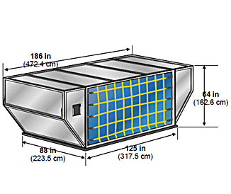 | Dimensions | Base: 88 in (223.5 cm) x 125 in (317.5 cm); Top: 88 in (223.5 cm) x 186 in (472.4 cm); Height: 64 in (162.6 cm) |